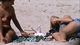 Two hot beach babes crotch shot big tits voyeur video