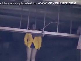 Cleaning up things after a yard sale, a gorgeous chick wearing sunglasses and a relatively short dress got filmed by a peeper and even revealed underwear as she bent over.