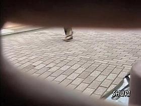 Bitch rubs her asian cunt on the chair's handle in spy video