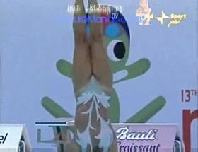 Synchronised swimming oops - split legs pussy view