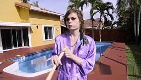 Smiling nudist lady was doing some stretching and yoga exercise by the ocean and a voyeur zoomed in at her while she was showing off her flexibility. Honestly, I can only call her an attention whore for having such a stunning naked body and doing such erotic things on a public place.