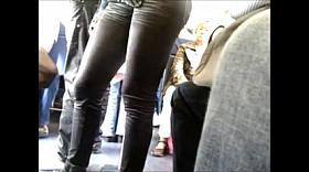 Sexy black highheels in the bus