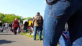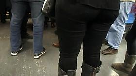 It's a nice thing when voyeur is a part of social life in his city. He got invited to a red carpet event and he took his time to snap secret videos of hot asses that passed by him. He spent a lot of time checking out the leggy chick in black satin shorts. She was aware of their shortness so she kept tugging them.