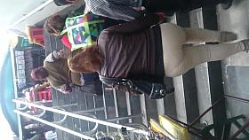 Upskirt camera met girl who was waiting a bus with bf