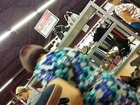 Sexy Asian babe lets a downblouse voyeur into her cleavage