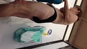 Large ass woman takes a piss in a public bathroom stall porno vid