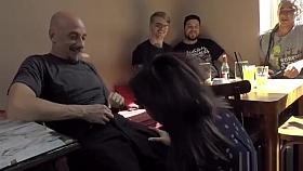 Mistress made brunette oral in public bar