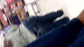 Leggy tall girl in high heals shops for food