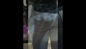 Erotic jeans up petticoat on the transport