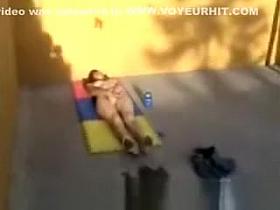 An extremely fuckable brunette babe showing off her naked traits for the beach cam