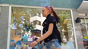 Bitch in skirt and g-string filmed by upskirting voyeur