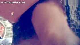 Blonde lady with naked natural boobs in the voyeur thru window clip