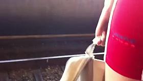 My real upskirt voyeur video of a brunette