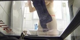 Naughty brunette is sucking cock in a public place and getting fucked at the same time