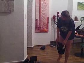 Voyeur took a nice long peek through her window while she was walking in the apartment and judging by the towel she wrapped her hair in, she was fresh out of the shower. Voyeur made sure to film every bit of her semi naked body while she walked around.