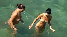 Shaved pussy is perfect at nudist beach