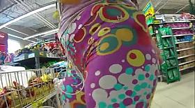 Candid large a-hole blond in taut leggings
