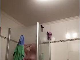 Spy shower cam girl shows the front and body back