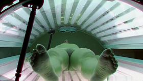 Tanned brunette babe has nice upskirt potential