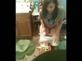 Sister's friend takes a long piss in the bathroom