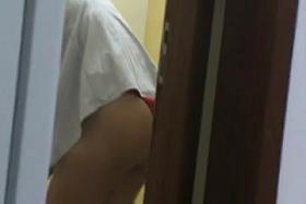 Sexy butted gal waves ass in thong on dressing room spy cam