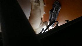 flashing stockings in restoraunt