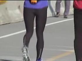 Candid babe is just running along the desolate road 08l