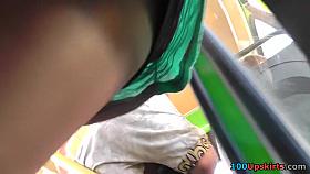 This is indeed a fantasy of any upskirt admirer come true! A breathtaking hottie in a flirty pink mini suit, and her admirable and pleasing arse in the tiniest pink belt panty filmed with closeup