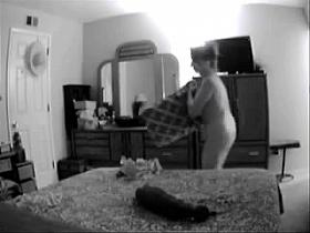 Having absolutely no idea that I was taping her with my phone, this saucy wifey got into the cabin and took off her clothes revealing her breasts and hairy pubis.