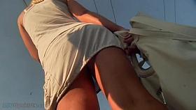 Golden-Haired beauty acquires her bare booty discharged upskirt