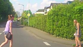 Two booty babes in a crowded shopping district upskirt porno
