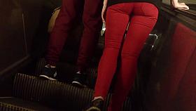 Tight pants girl goes to metro stop