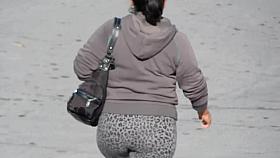Shooting her massive bottom at the department store