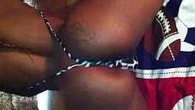 Two giant ass cheeks are perched comfortably between a bikini bottom