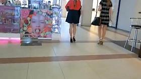 Glamorous babes in sexy dresses and high heels show their sexy upskirt