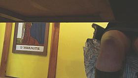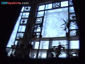 Sexy big bust hot mom in short blue skirt, hot legs and sexy ass caught by upskirt voyeur while doing some shopping in local supermarket.