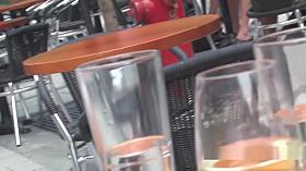 Russian girls in winter clothes gets taped while peeing in the street toilet