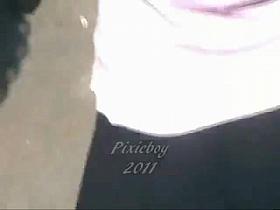 Black Skater Skirt, White thong, Nice gal!