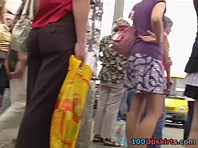 Amazing upskirt footage with extremely sexy lady. This horny milf was walking with her lover in sexy short skirt, crazy hot stockings and hessian boots. This combination is sexy wild.