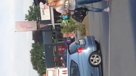 Drone peeps on teen giving blowjob