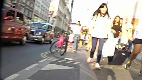 Public upskirt scene of a blonde MILF with big ass and long hair