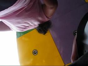 Plump breasted babe in a topless down blouse video