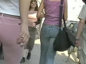 Seems like this voyeur stumbled on a hot milf mother shopping for groceries with her two teenage daughters by her side, to help her out. Well, that enabled us to check them all out and since they were all wearing tights, we can safely say that all three of their asses come from a same gene pool, certified.