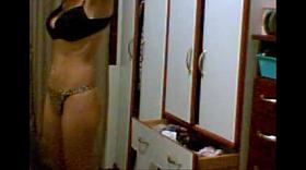 It seems like her naked posing after she took a shower have aroused her to the point where she had to stick a finger in her wet pussy and since she liked it, she rubbed her pussy to a mind numbing orgasm. Hidden camera caught her in her room, carefully unwrapping a towel and masturbating.
