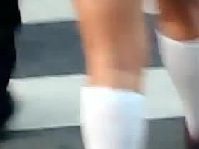 UPSKIRT--slim asian with a fat pussy peeking thru
