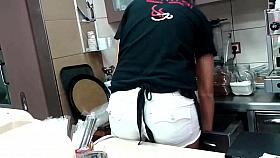 Oriental businesswoman gets very surprised when some guy grabs her clothes