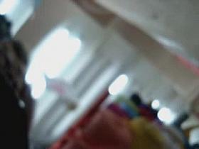 Striped panties covering ass and pussy in this spy cam upskirt video