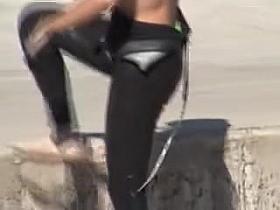 Young wave rider with her candid ass in tigt spandex costume 07f