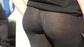 Voyeur upskirt vid of a slim brunette's ass in the bus