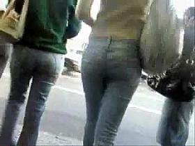 Brunette chick was wearing beautiful mini skirt tight skirt when a candid voyeur bloke filmed her nice athletic ass.